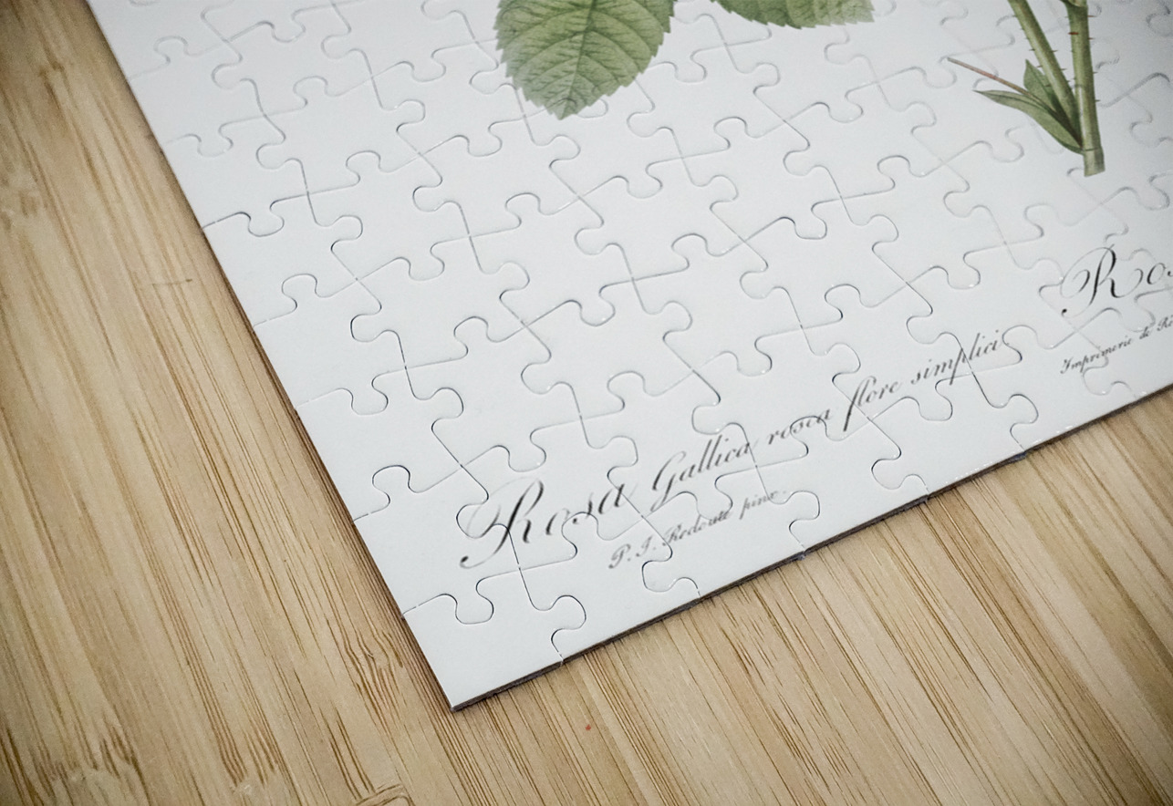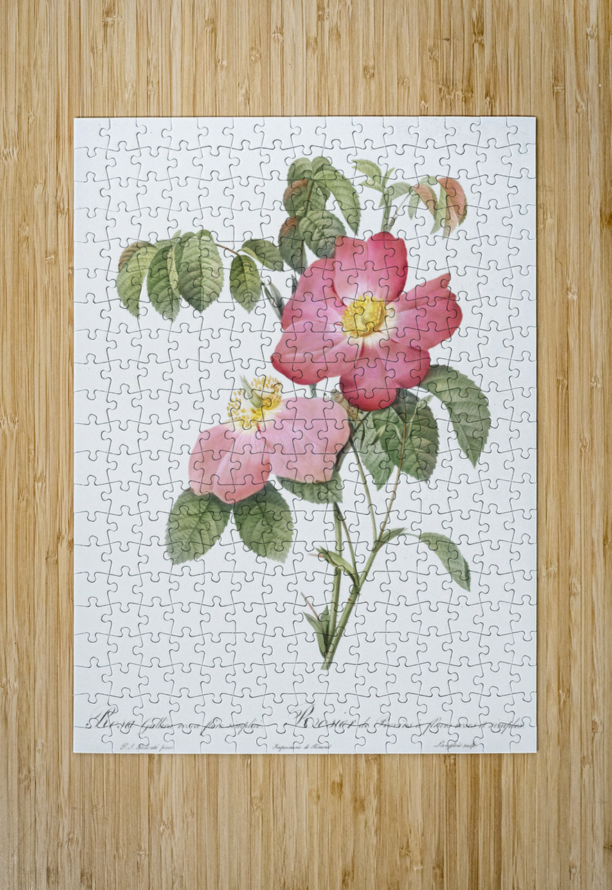 Pink French Rose also known as Provins Rosebush with Pink and Simple Flowers Rosa gallica rosea flore simplica from Les Roses 1817–1824 by Pierre-Jo...[+]