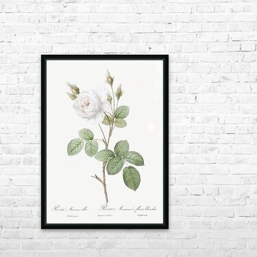 White Moss Rose also known as Misty Roses with White Flowers Rosa muscosa alba from Les Roses 1817–1824 by Pierre-Joseph Redouté.