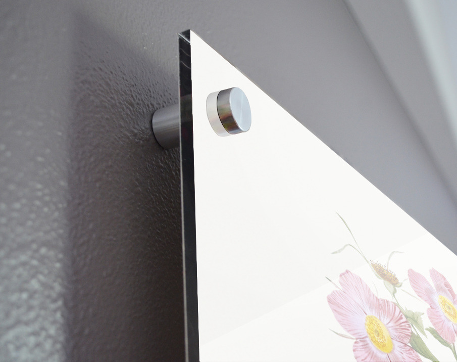 Printed to the edge - Ready to hang - provided with 4 premium polished aluminum stand off ( wall screws and mounting hardware provided ) We suggest a thicker 3/16" acrylic for any size over 42 inches to guarantee a straight acrylic, without curvature