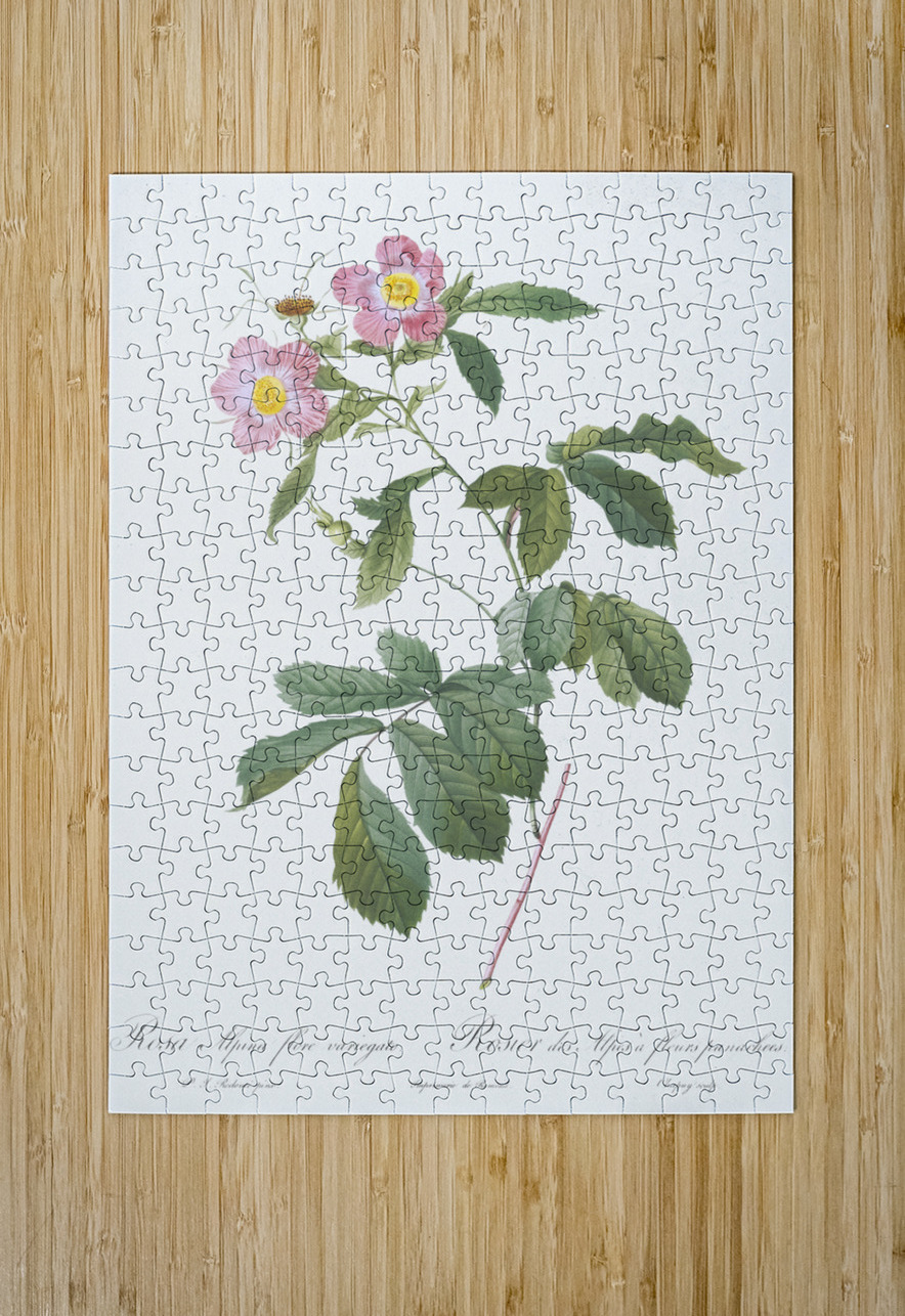 Variegated Alpine Rose Rosa alpina flore variegato from Les Roses 1817–1824 by Pierre-Joseph Redouté.