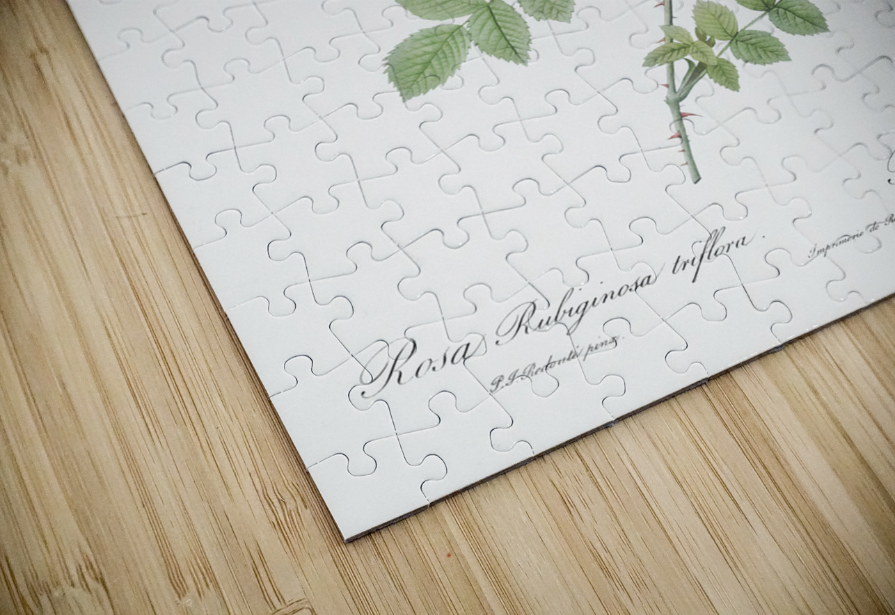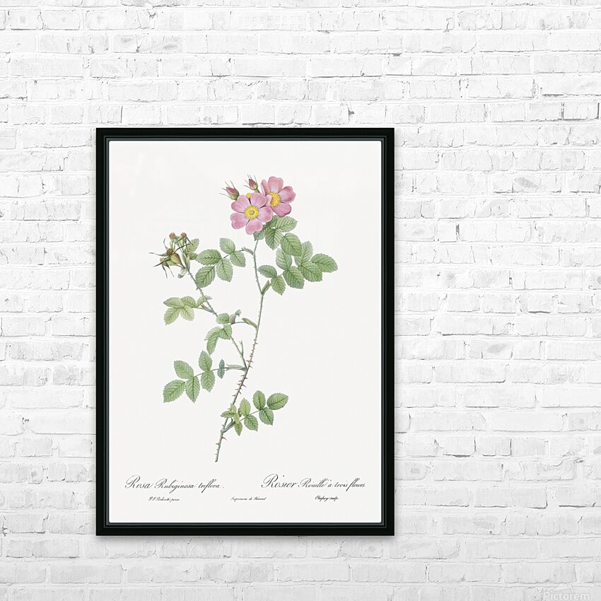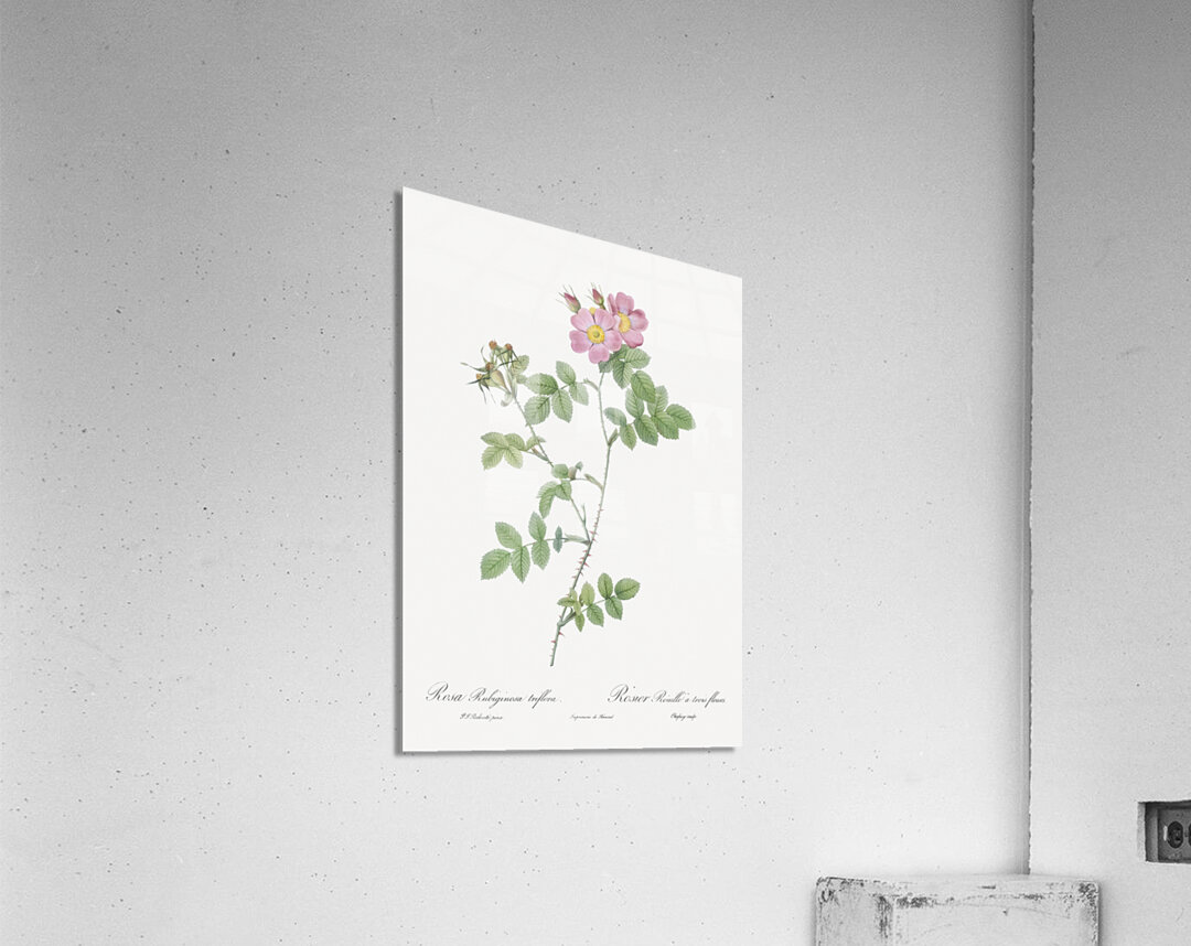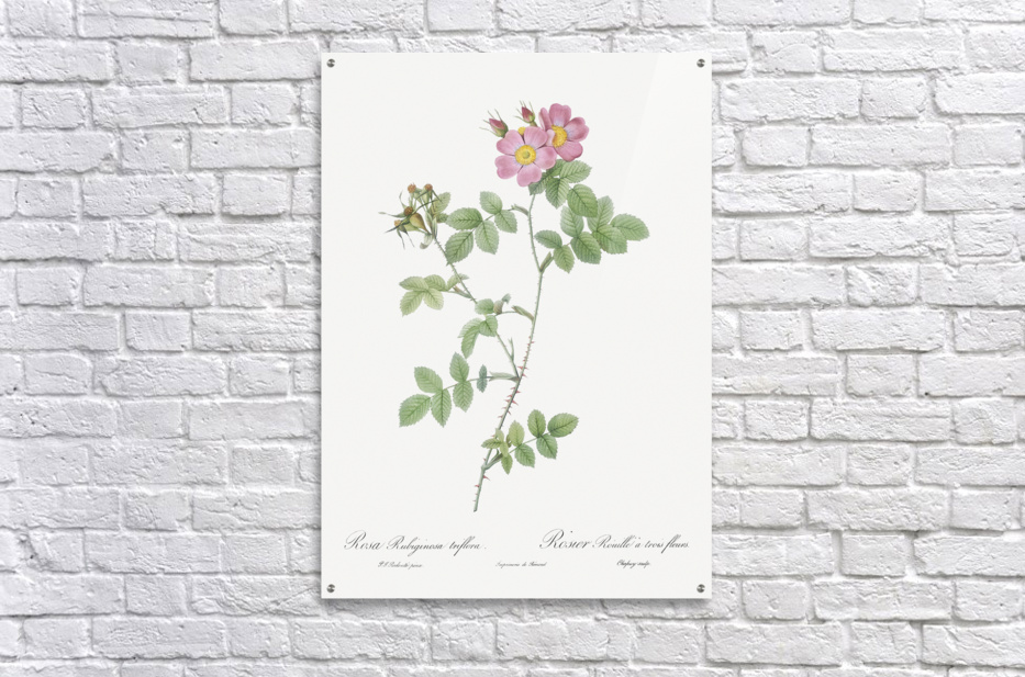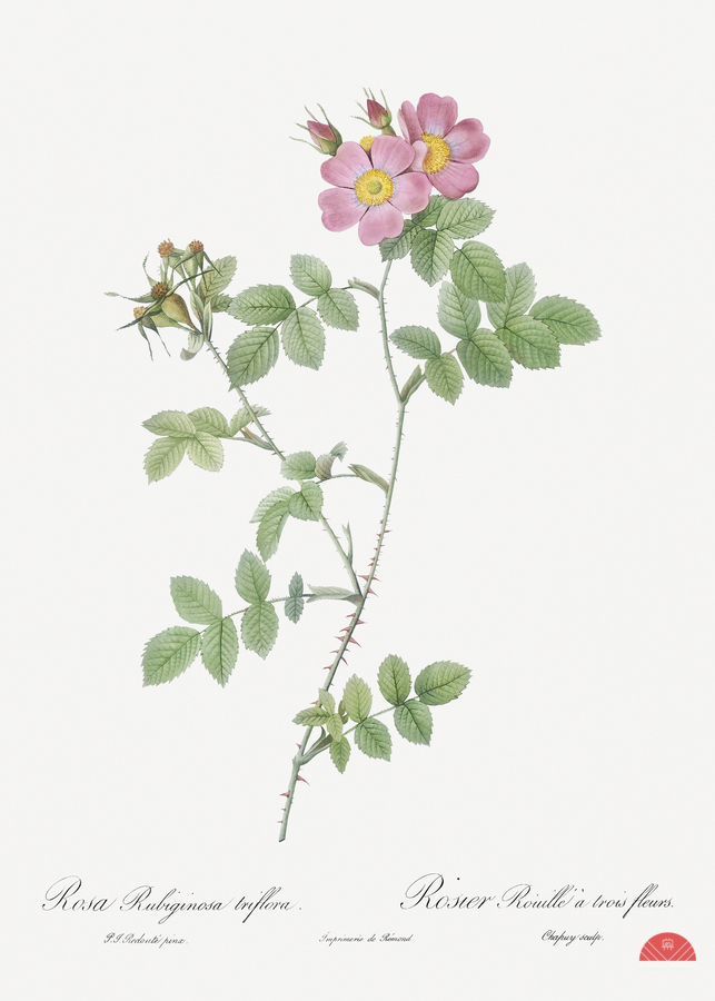 Sweetbriar also known as Rusty Rose with Three Flowers Rosa rubiginosa triflora from Les Roses 1817–1824 by Pierre-Joseph Redouté.