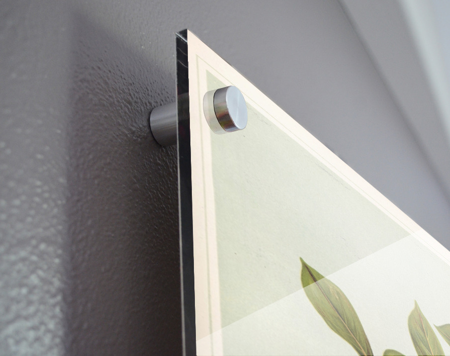 Printed to the edge - Ready to hang - provided with 4 premium polished aluminum stand off ( wall screws and mounting hardware provided ) We suggest a thicker 3/16" acrylic for any size over 42 inches to guarantee a straight acrylic, without curvature