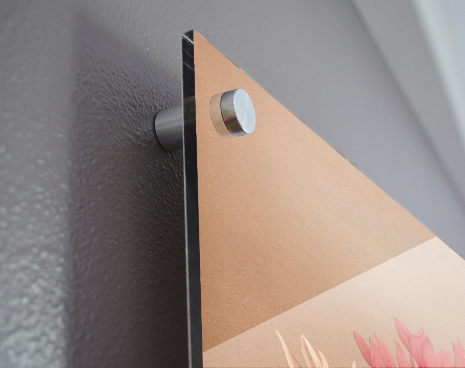 Printed to the edge - Ready to hang - provided with 4 premium polished aluminum stand off ( wall screws and mounting hardware provided ) We suggest a thicker 3/16" acrylic for any size over 42 inches to guarantee a straight acrylic, without curvature