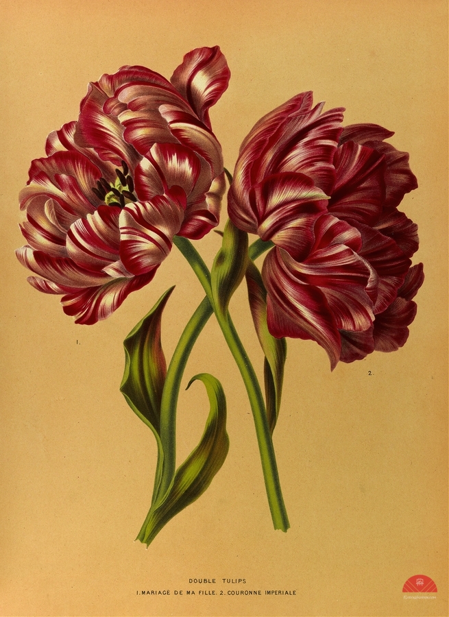 Double Tulips 1.Mariage De Ma Fl Lle. 2.Couronne Imperiale 1872-1881 Arentina Hendrica Arendsen Dutch 1836 - 1915