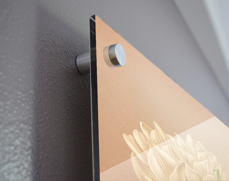 Printed to the edge - Ready to hang - provided with 4 premium polished aluminum stand off ( wall screws and mounting hardware provided ) We suggest a thicker 3/16" acrylic for any size over 42 inches to guarantee a straight acrylic, without curvature