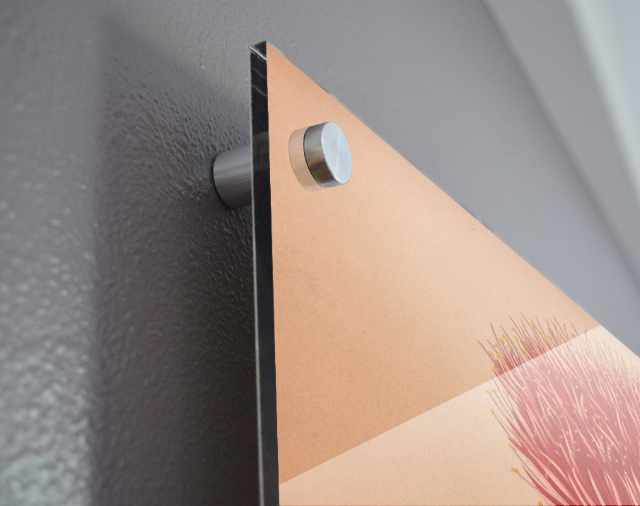 Printed to the edge - Ready to hang - provided with 4 premium polished aluminum stand off ( wall screws and mounting hardware provided ) We suggest a thicker 3/16" acrylic for any size over 42 inches to guarantee a straight acrylic, without curvature