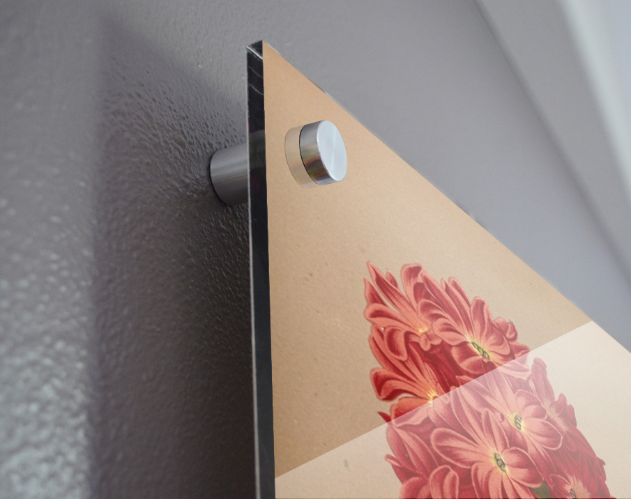 Printed to the edge - Ready to hang - provided with 4 premium polished aluminum stand off ( wall screws and mounting hardware provided ) We suggest a thicker 3/16" acrylic for any size over 42 inches to guarantee a straight acrylic, without curvature