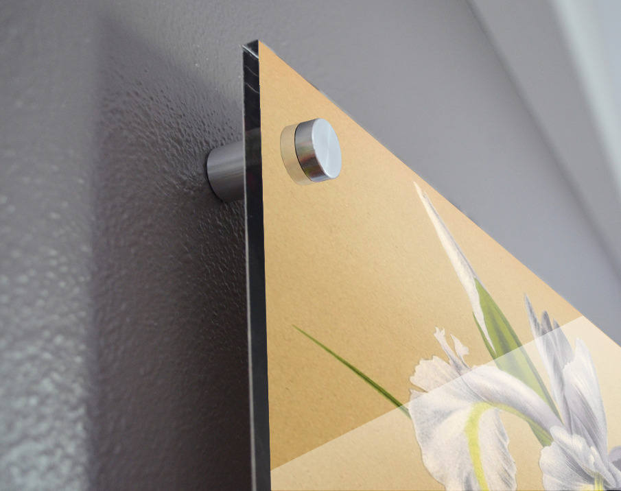 Printed to the edge - Ready to hang - provided with 4 premium polished aluminum stand off ( wall screws and mounting hardware provided )