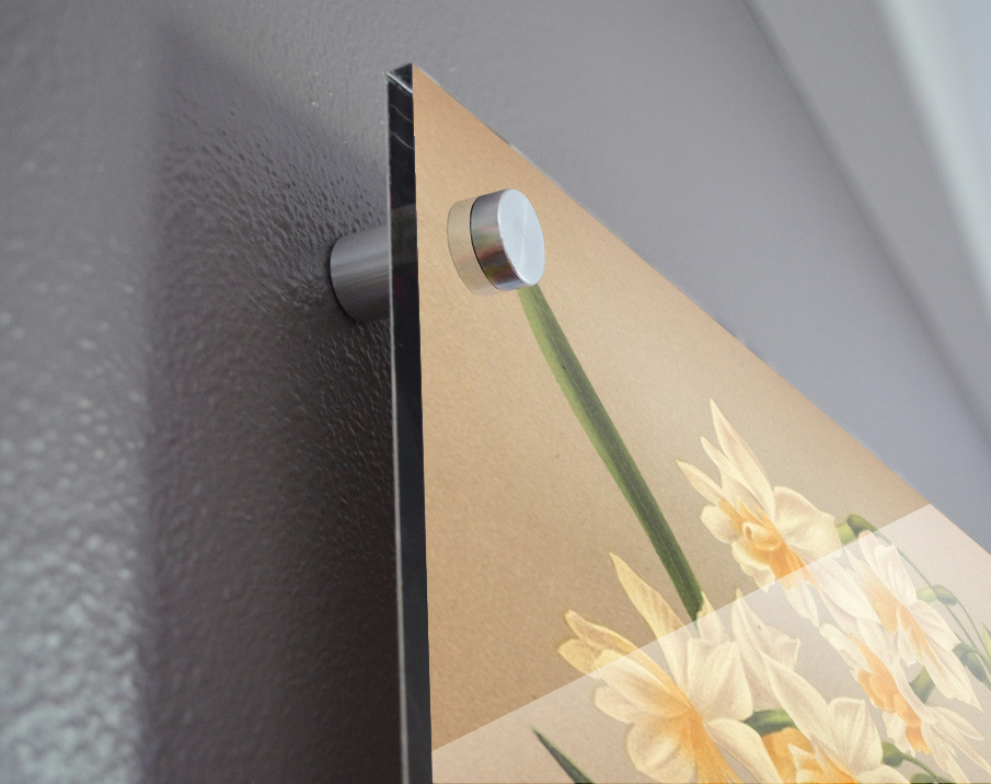 Printed to the edge - Ready to hang - provided with 4 premium polished aluminum stand off ( wall screws and mounting hardware provided )