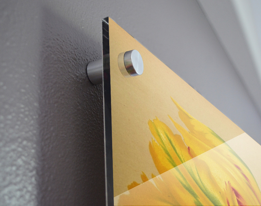 Printed to the edge - Ready to hang - provided with 4 premium polished aluminum stand off ( wall screws and mounting hardware provided )