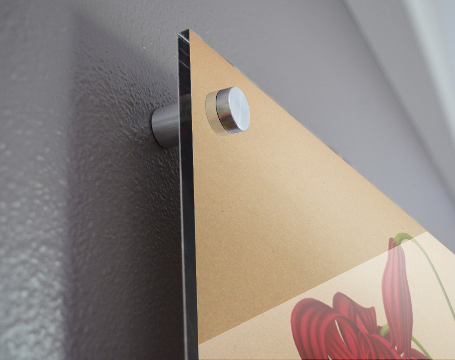 Printed to the edge - Ready to hang - provided with 4 premium polished aluminum stand off ( wall screws and mounting hardware provided ) We suggest a thicker 3/16" acrylic for any size over 42 inches to guarantee a straight acrylic, without curvature
