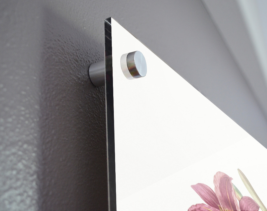 Printed to the edge - Ready to hang - provided with 4 premium polished aluminum stand off ( wall screws and mounting hardware provided ) We suggest a thicker 3/16" acrylic for any size over 42 inches to guarantee a straight acrylic, without curvature