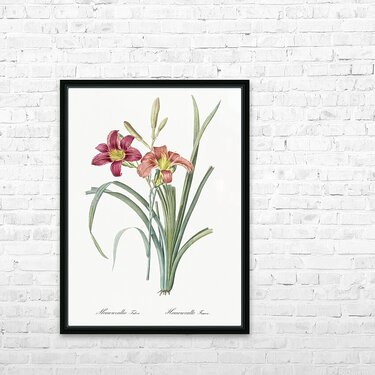 Orange day lily illustration from Les liliacées 1805 by Pierre Joseph Redouté 1759-1840.
