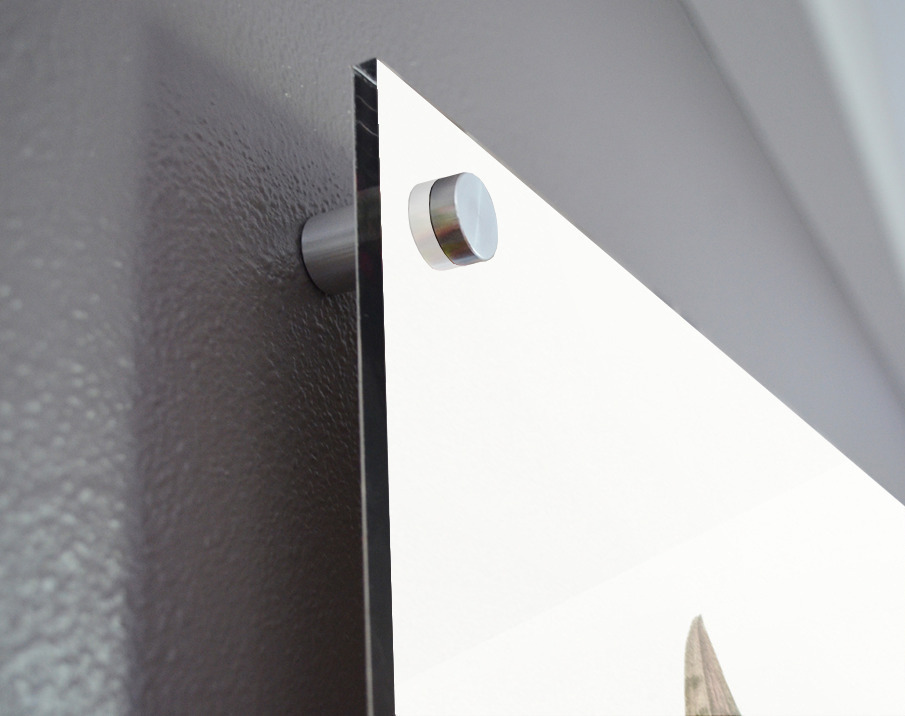 Printed to the edge - Ready to hang - provided with 4 premium polished aluminum stand off ( wall screws and mounting hardware provided ) We suggest a thicker 3/16" acrylic for any size over 42 inches to guarantee a straight acrylic, without curvature