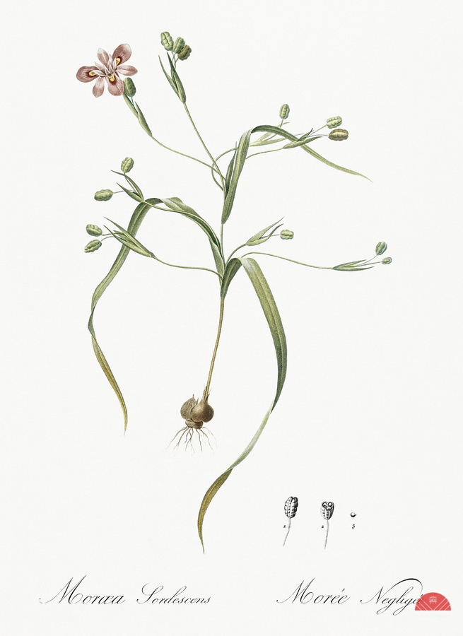 Moraea sordescens illustration from Les liliacées 1805 by Pierre Joseph Redouté 1759-1840.
