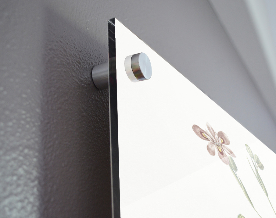 Printed to the edge - Ready to hang - provided with 4 premium polished aluminum stand off ( wall screws and mounting hardware provided ) We suggest a thicker 3/16" acrylic for any size over 42 inches to guarantee a straight acrylic, without curvature
