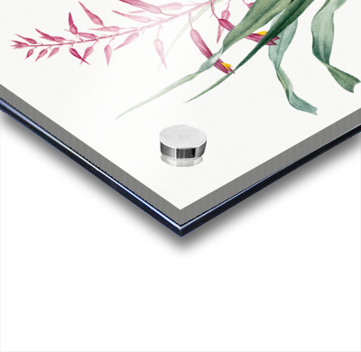 Printed to the edge - Ready to hang - provided with 4 premium polished aluminum stand off ( wall screws and mounting hardware provided ) We suggest a thicker 3/16" acrylic for any size over 42 inches to guarantee a straight acrylic, without curvature