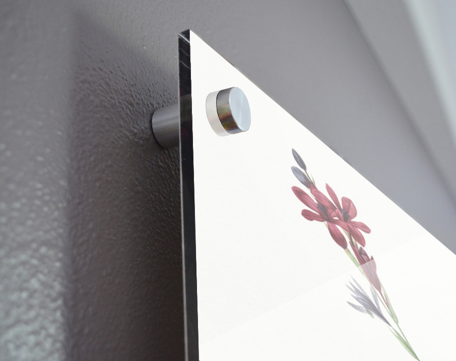 Printed to the edge - Ready to hang - provided with 4 premium polished aluminum stand off ( wall screws and mounting hardware provided ) We suggest a thicker 3/16" acrylic for any size over 42 inches to guarantee a straight acrylic, without curvature