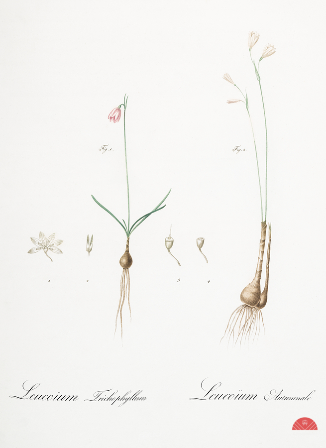 Leucoium trichophyllum illustration from Les liliacées 1805 by Pierre Joseph Redouté 1759-1840.
