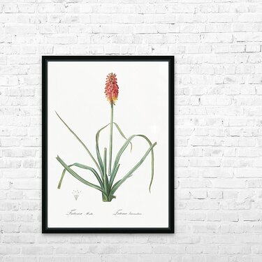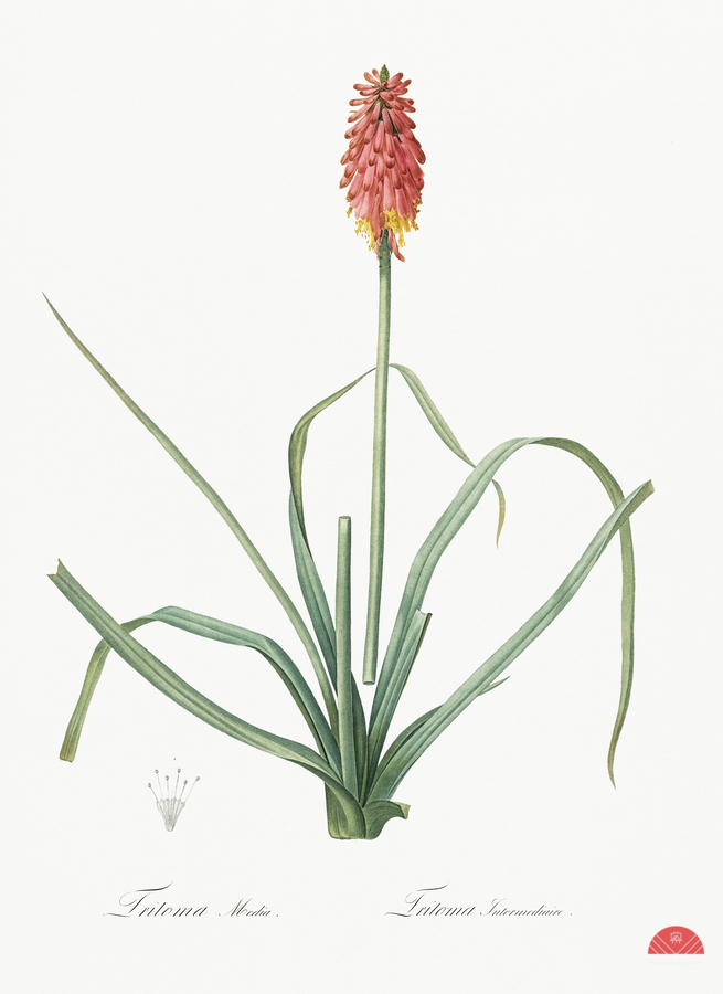 Redhot poker illustration from Les liliacées 1805 by Pierre Joseph Redouté 1759-1840.