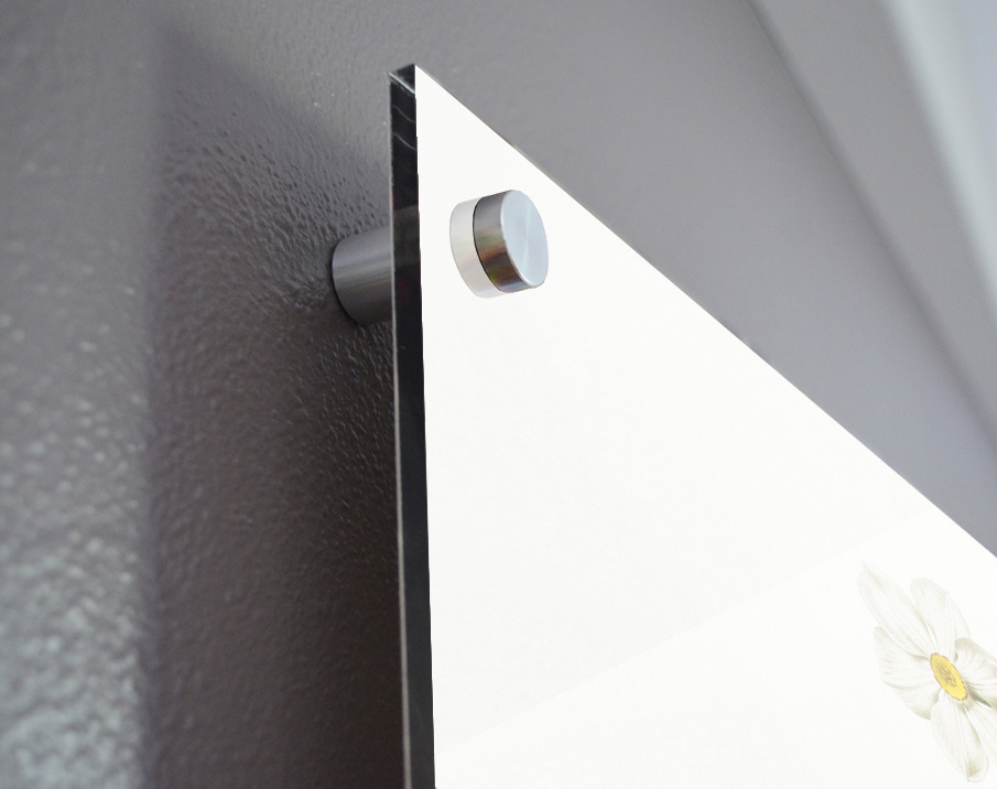 Printed to the edge - Ready to hang - provided with 4 premium polished aluminum stand off ( wall screws and mounting hardware provided ) We suggest a thicker 3/16" acrylic for any size over 42 inches to guarantee a straight acrylic, without curvature