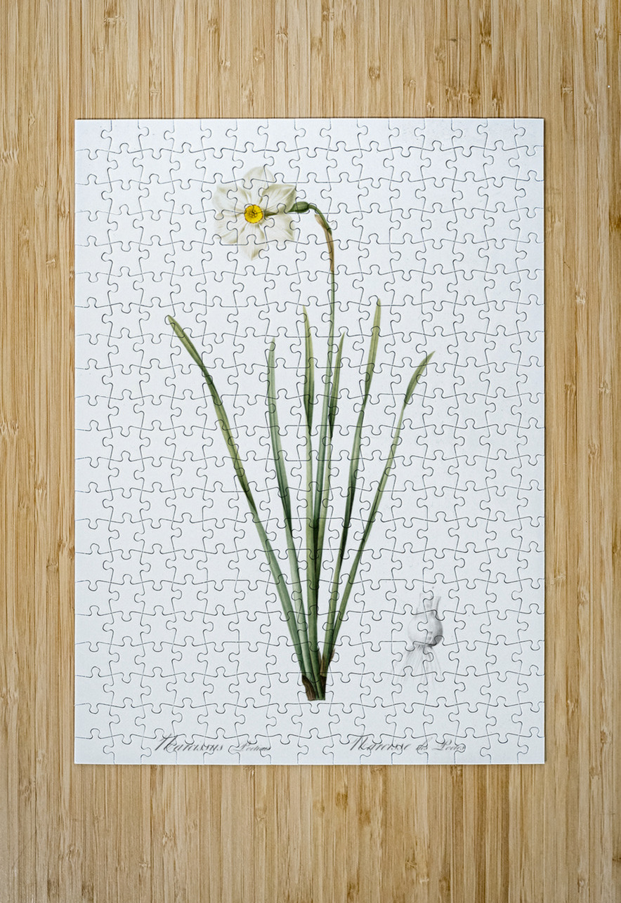 Narcissus poeticus illustration from Les liliacées 1805 by Pierre Joseph Redouté 1759-1840.
