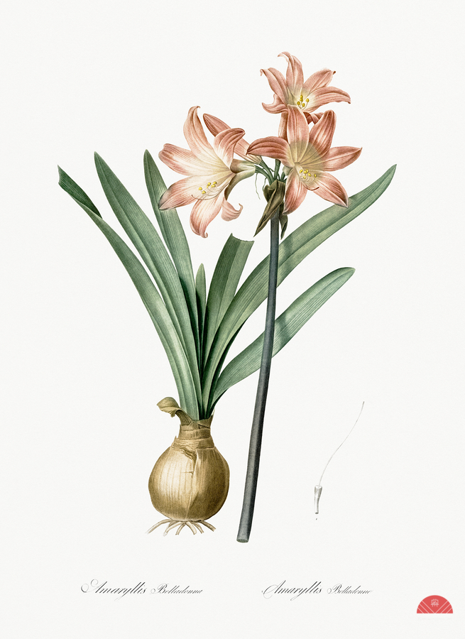 Amaryllis Belladonna illustration from Les liliacées 1805 by Pierre Joseph Redouté 1759-1840.