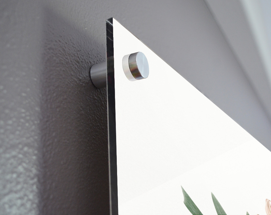 Printed to the edge - Ready to hang - provided with 4 premium polished aluminum stand off ( wall screws and mounting hardware provided ) We suggest a thicker 3/16" acrylic for any size over 42 inches to guarantee a straight acrylic, without curvature