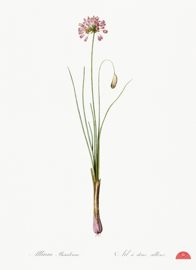 Autumn onion illustration from Les liliacées 1805 by Pierre Joseph Redouté 1759-1840.