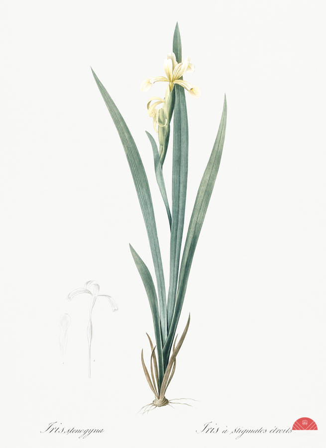 Yellow banded iris illustration from Les liliacées 1805 by Pierre Joseph Redouté 1759-1840.
