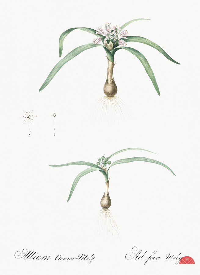 Dwarf garlic illustration from Les liliacées 1805 by Pierre Joseph Redouté 1759-1840.