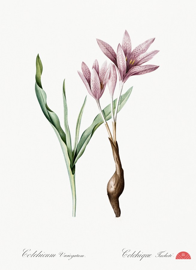 Autumn crocus illustration from Les liliacées 1805 by Pierre Joseph Redouté 1759-1840.