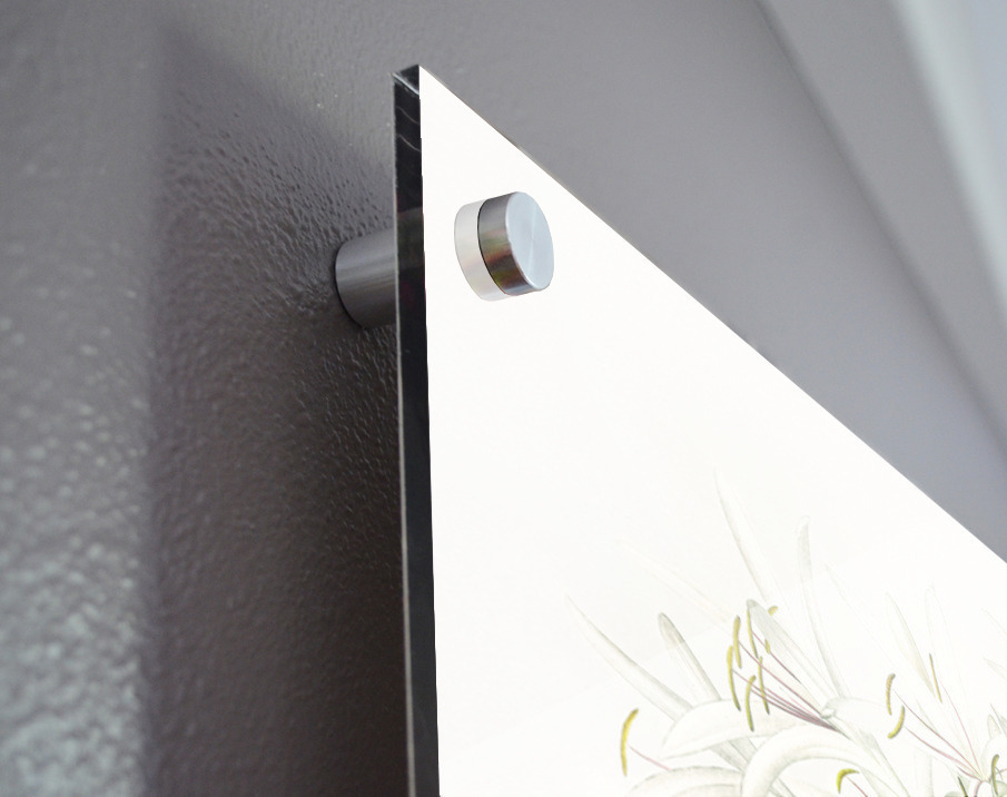 Printed to the edge - Ready to hang - provided with 4 premium polished aluminum stand off ( wall screws and mounting hardware provided ) We suggest a thicker 3/16" acrylic for any size over 42 inches to guarantee a straight acrylic, without curvature