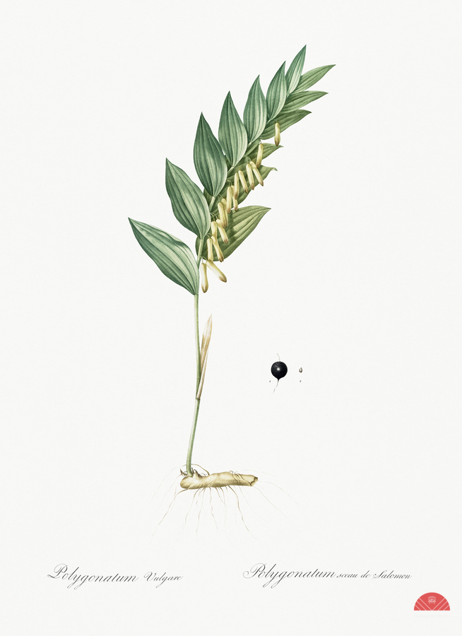 Angular solomon seal illustration from Les liliacées 1805 by Pierre Joseph Redouté 1759-1840.