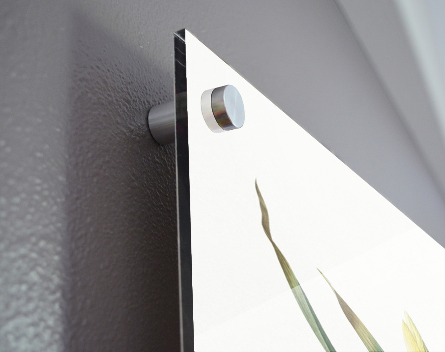 Printed to the edge - Ready to hang - provided with 4 premium polished aluminum stand off ( wall screws and mounting hardware provided ) We suggest a thicker 3/16" acrylic for any size over 42 inches to guarantee a straight acrylic, without curvature