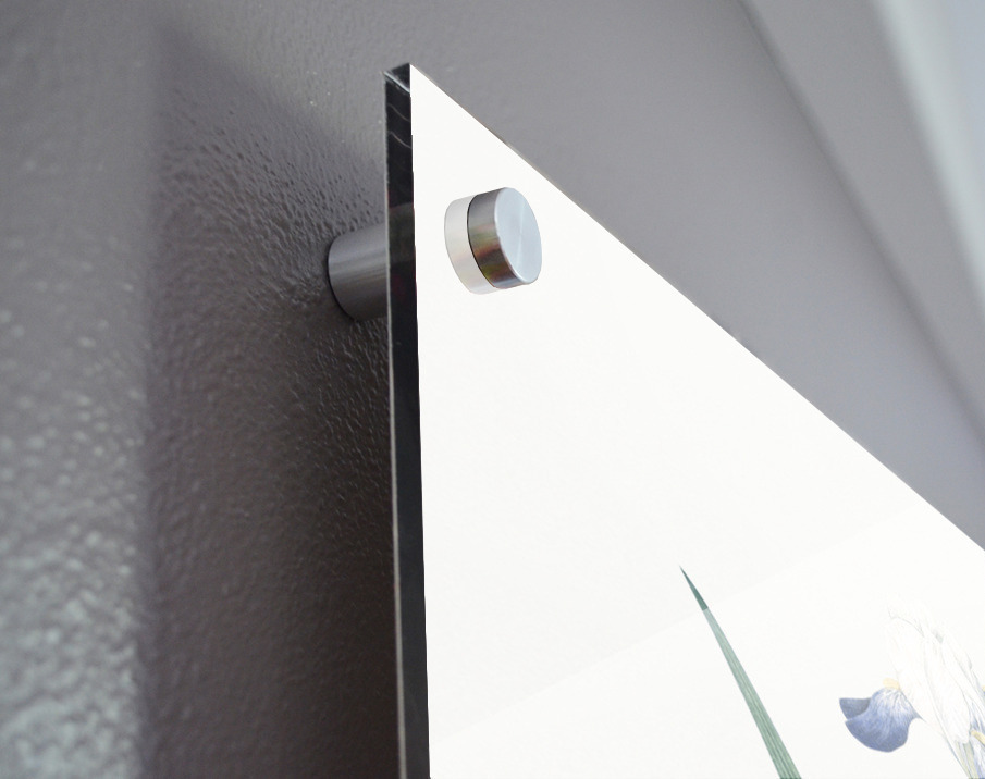Printed to the edge - Ready to hang - provided with 4 premium polished aluminum stand off ( wall screws and mounting hardware provided ) We suggest a thicker 3/16" acrylic for any size over 42 inches to guarantee a straight acrylic, without curvature