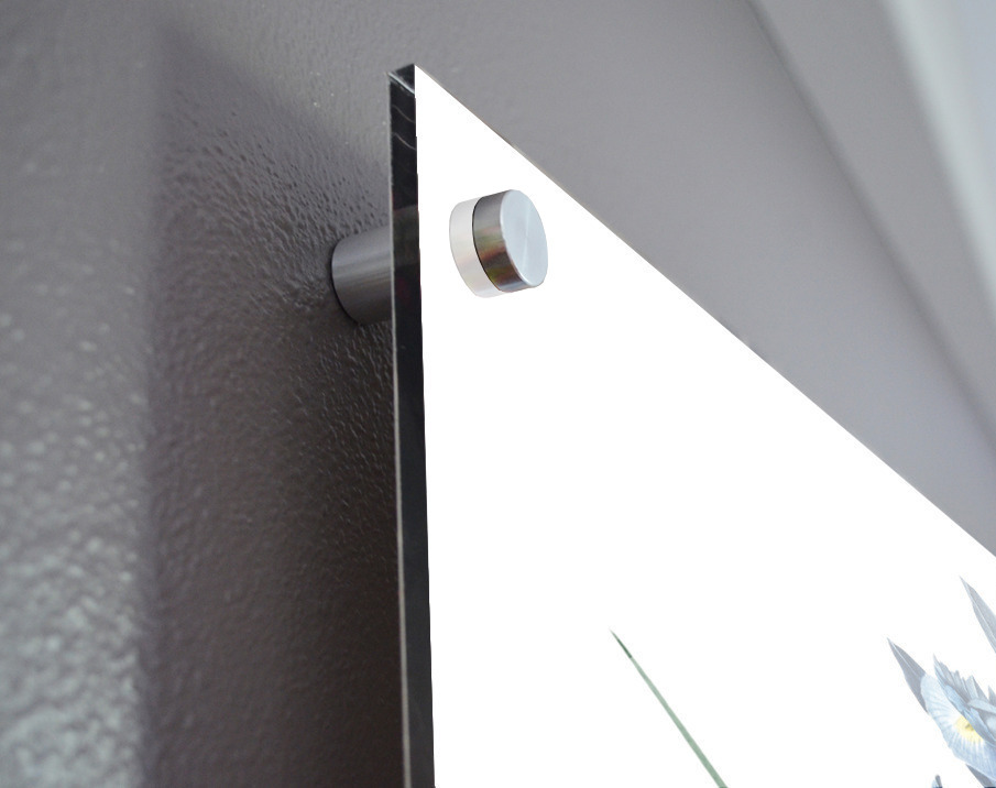 Printed to the edge - Ready to hang - provided with 4 premium polished aluminum stand off ( wall screws and mounting hardware provided ) We suggest a thicker 3/16" acrylic for any size over 42 inches to guarantee a straight acrylic, without curvature