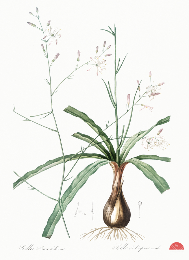 Wavy-leafed soap plant illustration from Les liliacées 1805 by Pierre Joseph Redouté 1759-1840.