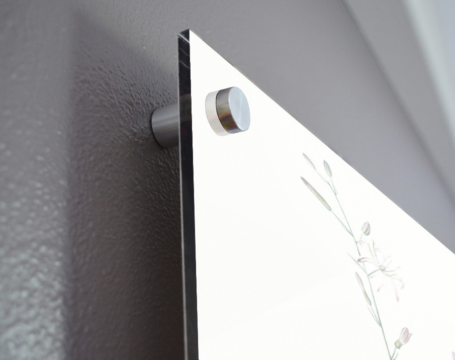 Printed to the edge - Ready to hang - provided with 4 premium polished aluminum stand off ( wall screws and mounting hardware provided ) We suggest a thicker 3/16" acrylic for any size over 42 inches to guarantee a straight acrylic, without curvature
