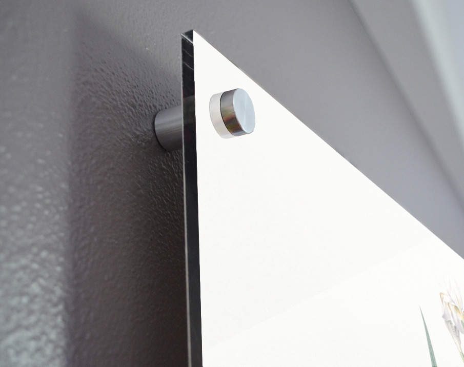 Printed to the edge - Ready to hang - provided with 4 premium polished aluminum stand off ( wall screws and mounting hardware provided ) We suggest a thicker 3/16" acrylic for any size over 42 inches to guarantee a straight acrylic, without curvature
