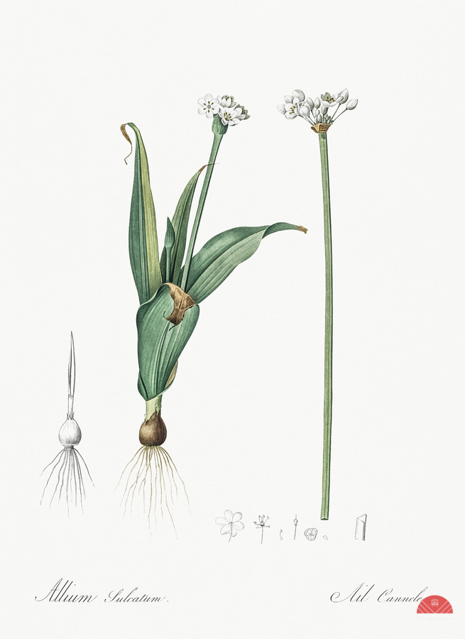 Ornamental onion illustration from Les liliacées 1805 by Pierre Joseph Redouté 1759-1840.