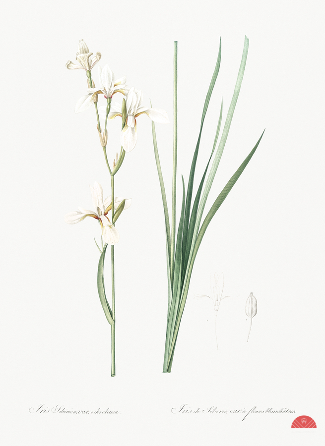 Siberian iris illustration from Les liliacées 1805 by Pierre Joseph Redouté 1759-1840.