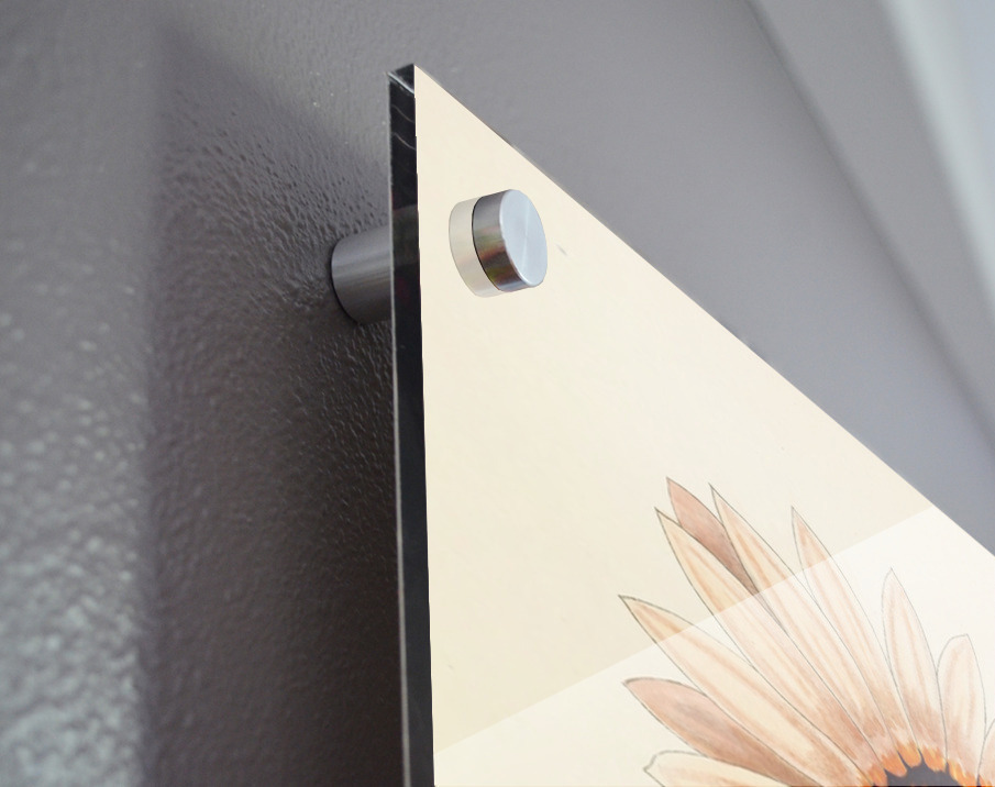 Printed to the edge - Ready to hang - provided with 4 premium polished aluminum stand off ( wall screws and mounting hardware provided ) We suggest a thicker 3/16" acrylic for any size over 42 inches to guarantee a straight acrylic, without curvature