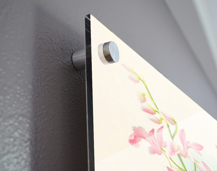 Printed to the edge - Ready to hang - provided with 4 premium polished aluminum stand off ( wall screws and mounting hardware provided ) We suggest a thicker 3/16" acrylic for any size over 42 inches to guarantee a straight acrylic, without curvature