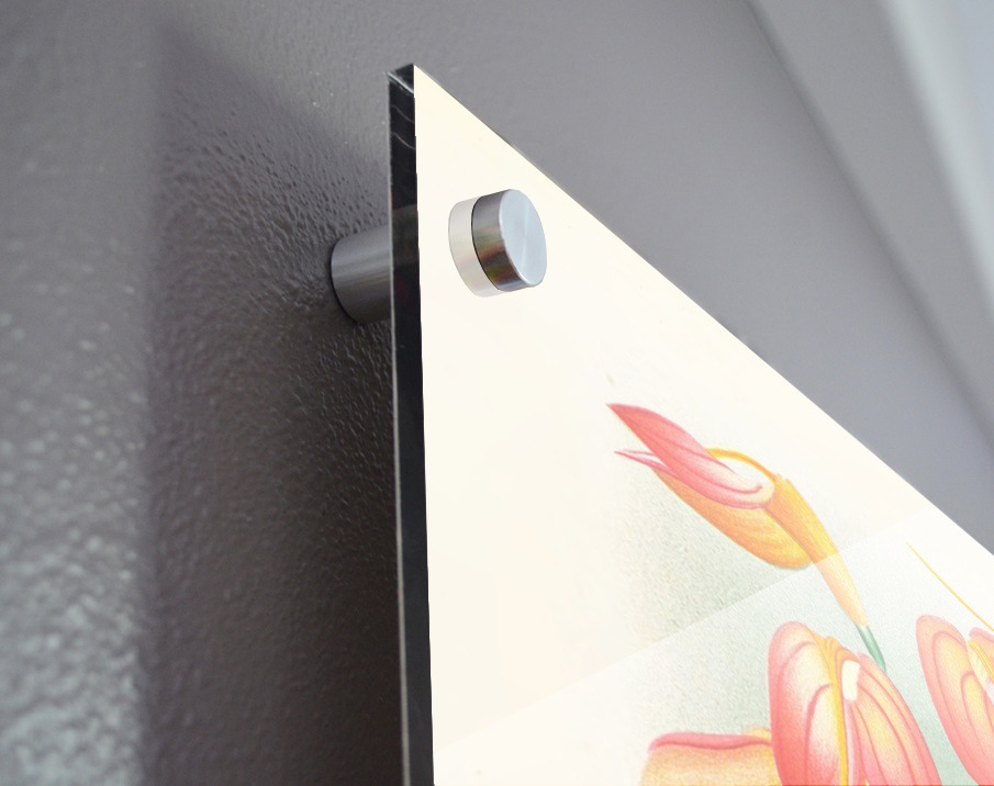 Printed to the edge - Ready to hang - provided with 4 premium polished aluminum stand off ( wall screws and mounting hardware provided ) We suggest a thicker 3/16" acrylic for any size over 42 inches to guarantee a straight acrylic, without curvature