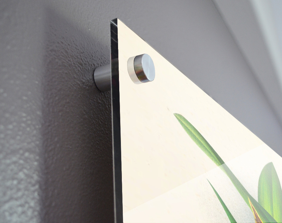 Printed to the edge - Ready to hang - provided with 4 premium polished aluminum stand off ( wall screws and mounting hardware provided ) We suggest a thicker 3/16" acrylic for any size over 42 inches to guarantee a straight acrylic, without curvature