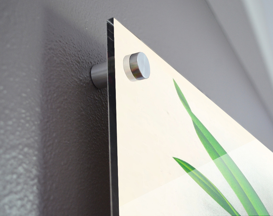 Printed to the edge - Ready to hang - provided with 4 premium polished aluminum stand off ( wall screws and mounting hardware provided ) We suggest a thicker 3/16" acrylic for any size over 42 inches to guarantee a straight acrylic, without curvature