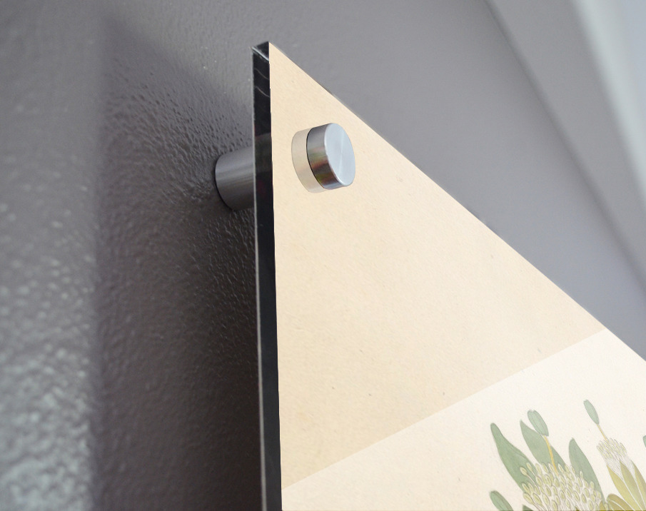 Printed to the edge - Ready to hang - provided with 4 premium polished aluminum stand off ( wall screws and mounting hardware provided ) We suggest a thicker 3/16" acrylic for any size over 42 inches to guarantee a straight acrylic, without curvature