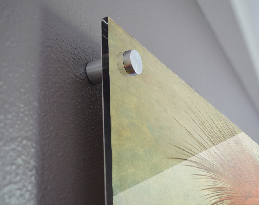 Printed to the edge - Ready to hang - provided with 4 premium polished aluminum stand off ( wall screws and mounting hardware provided )