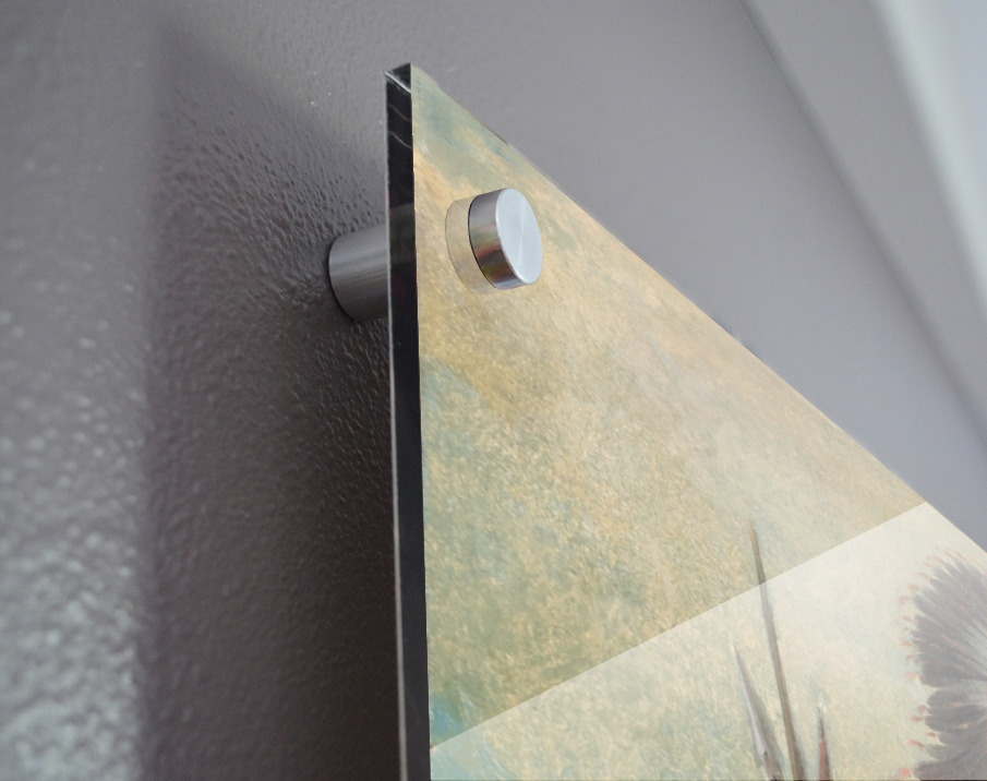 Printed to the edge - Ready to hang - provided with 4 premium polished aluminum stand off ( wall screws and mounting hardware provided )